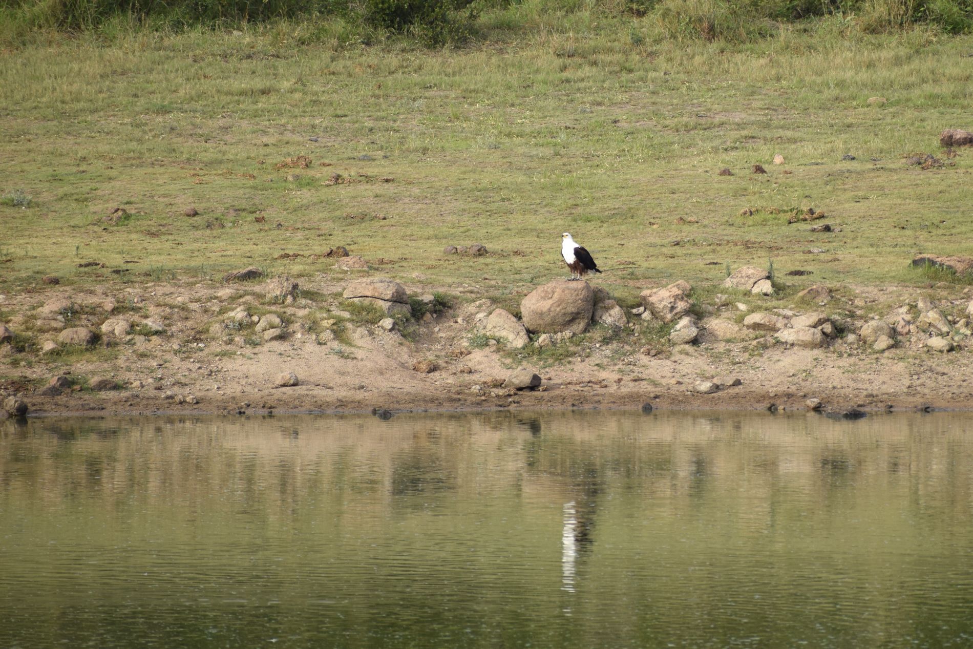 A fish eagle hanging out at the lake side early morning.